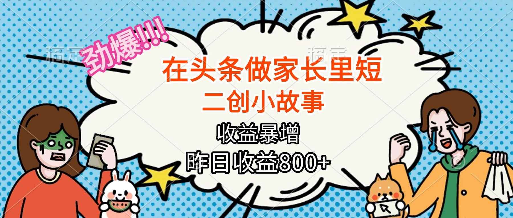 【劲爆】在头条做家长里短二创小故事,收益暴增,月入2W+