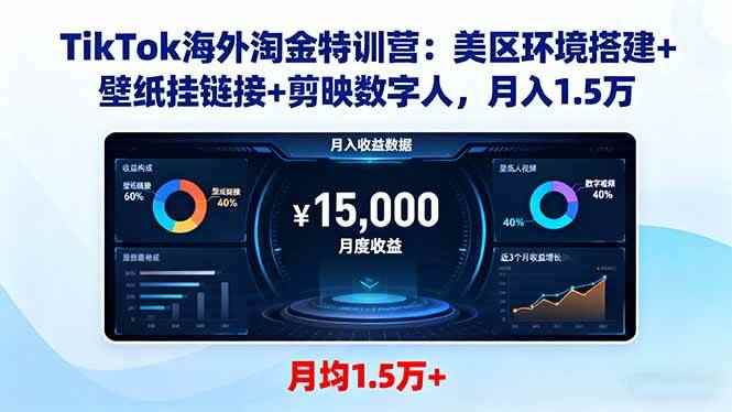 本TikTok海外淘金特训营,聚焦TikTok账号搭建、壁纸项目运营及剪映工具应用三大核心模块。课程涵盖美区/台湾/印尼手机环境搭建、Tik账号注册、Outlook邮箱注册等基础操作,深入讲解壁纸项目推广(SSME平台挂链接、CC账号报白)、剪映高阶功能(数字人、卡点视频、蒙版特效)及AI剪映模板拉新等实战技巧,结合拉布布壁纸热点、神图回填链接等案例,系统传授从0到1的TikTok出海变现全流程。