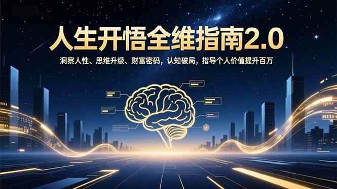 本课程为《开悟2.0升级版人生进阶指南》,是一套系统整合认知升级与人生实践的深度课程。课程围绕四大核心模块展开:“洞察人性”揭示阶层、权谋与关系本质;“财富密码”聚焦趋势判断、天赋发掘与普通人实现自由的路径;“思维升级”教授深度思考、高效学习与心流等认知重构方法;“自我圆满”则引导向内探索,融合经典智慧实现精神内守。课程旨在通过全维度认知破局与能力重塑,帮助学员在理解社会规律与内在自我的基础上,实现个人成长与价值跃迁。