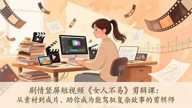 本课程以一部完整的剧情竖屏短视频《女人不易》为实战案例,深入拆解专业剧情短片的全流程剪辑技法。课程从审稿、素材分类、音乐选择开始,系统教授双机位/多机位素材的对话剪辑逻辑、正反打镜头运用、反应镜头捕捉、节奏把控与越轴处理等核心叙事技巧。课程重点讲解了如何通过音效、音乐、慢动作等手法强化情绪与刻画人物,并结合具体镜头(全景、中景、特写)的剪辑选择,手把手演示如何将原始素材剪辑成节奏紧凑、情感饱满、叙事流畅的专业级剧情短片。