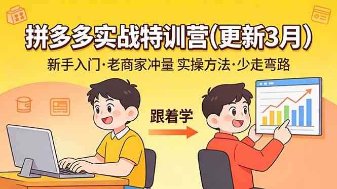 纪主任拼多多特训营(2026 年 3 月更新),从 2023 持续更新至今,覆盖拼多多全链路运营实战。课程包含 SKU 布局、神图制作、产品定位、市场分析等基础操作,精讲强付费起量、叠价玩法、微付费高投产、无限秒杀、断流急救、活动搭配、无视比价、冷启动等进阶与高阶玩法,从低价引流到高利润运营、从新店起店到老店盘活,全程手把手教学,提供可直接落地的 SOP 与实操方案。