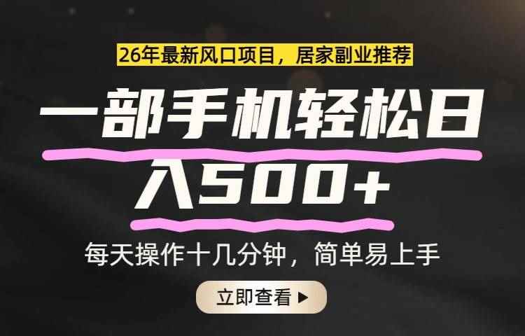 (17680期)26年居家副业首选,一部手机轻松日入500+,长期稳定可做 |