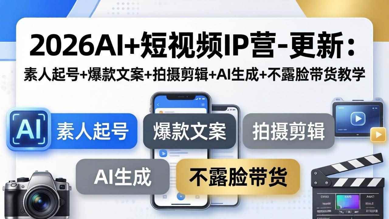 本课程从IP打造逻辑、高价值定位、素人起号方法,到爆款文案脚本、口播拍摄、剪辑实操,再到AI生成爆款内容、不露脸带货、实体工厂引流、本地同城推广,提供从0到1打造短视频IP、暴力起号、流量变现的全流程方法。