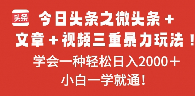 今天为大家带来的今日头条之微头条+文章+视频三重暴力玩法,学会一种轻松日入2000+,小白一学就通!