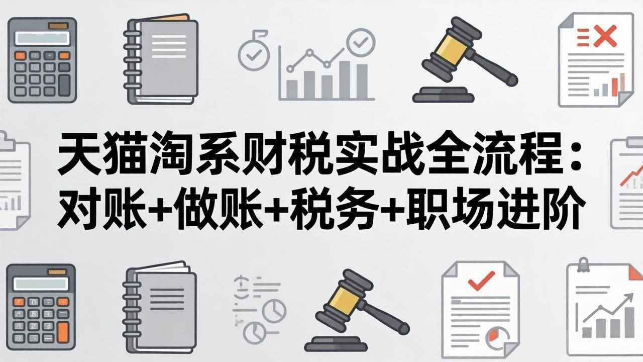 本课程是一套专为天猫淘系财税从业者打造的实战全流程体系,聚焦“对账+做账+税务+职场进阶”四大核心模块。课程从电商财务工作流程概述入手,系统讲解淘系后台常用模块、对账所需表格及导出路径、订单报表与宝贝账单字段解释。深度拆解订单时点对账全流程(收入确认、回款匹配、ERP成本匹配、费用确认、快递运费核对)及账单时点对账流程。账务处理涵盖收入成本费用确认、刷单/促销/换货/货损等特殊场景账务、财务软件建账做账结账。税务模块详解电商一般及特殊税务处理(买赠、优惠券、积分等)、小规模/一般纳税人申报实操、淘系涉税数据报送。此外还包含店铺收入成本毛利分析、利润表解读、退货率计算、单品毛利表制作等进阶技能,帮助学员从0到1掌握天猫淘系财税全链路,实现职场能力跃迁。
