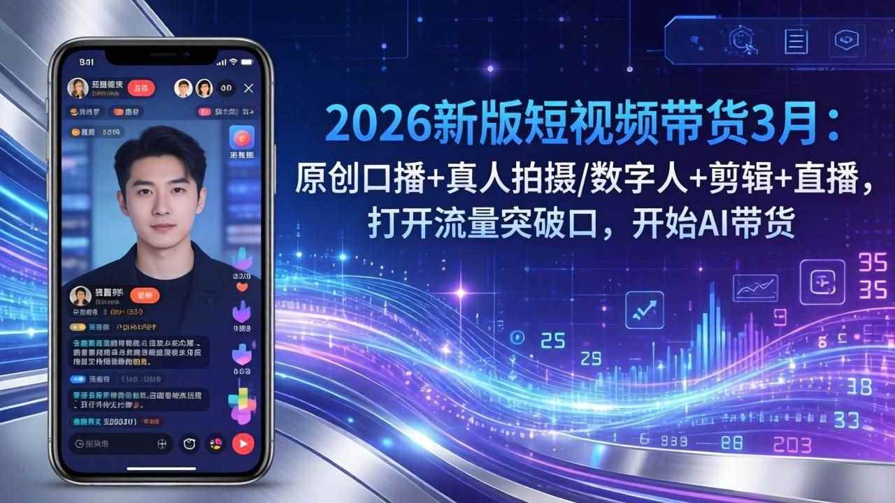 [短视频运营] (17724期)2026新版短视频带货3月:原创口播+真人拍摄/数字人+剪辑+直播,打开流量突破口,开始AI带货 |