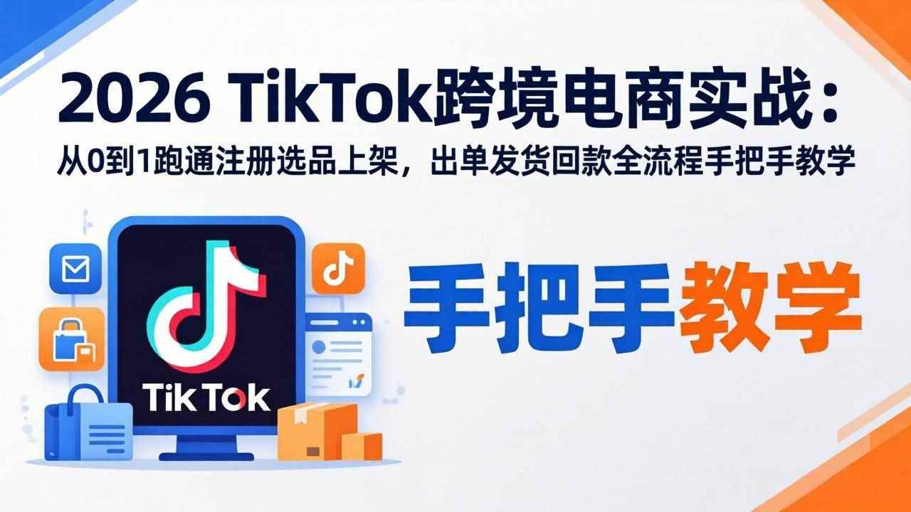 本课程是一套2026年从0到1跑通TikTok跨境电商的实战指南,聚焦真实可行的落地方法。课程系统讲解TikTok跨境电商值不值得做、相关工具注册与电脑环境、店铺注册准备资料、店铺开通与基础设置、选品(卖什么才能出单)、上架(怎么把货卖出去)、内容(短视频和直播大体方向,目前以商品卡为主)六大核心模块。现阶段以商品卡为主、内容为辅,用最低成本快速验证模式,帮助新手避开常见坑点,逐步实现稳定出单。